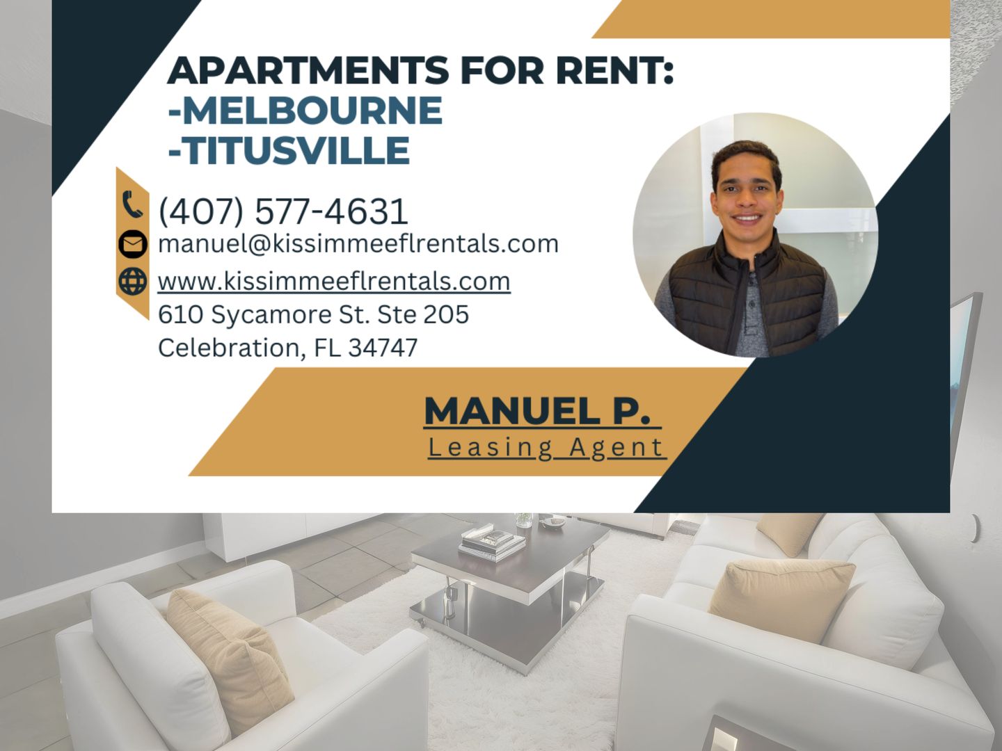 Call (407) 577-4631 and/or e-mail at manuel@kissimmeeflrentals.com.